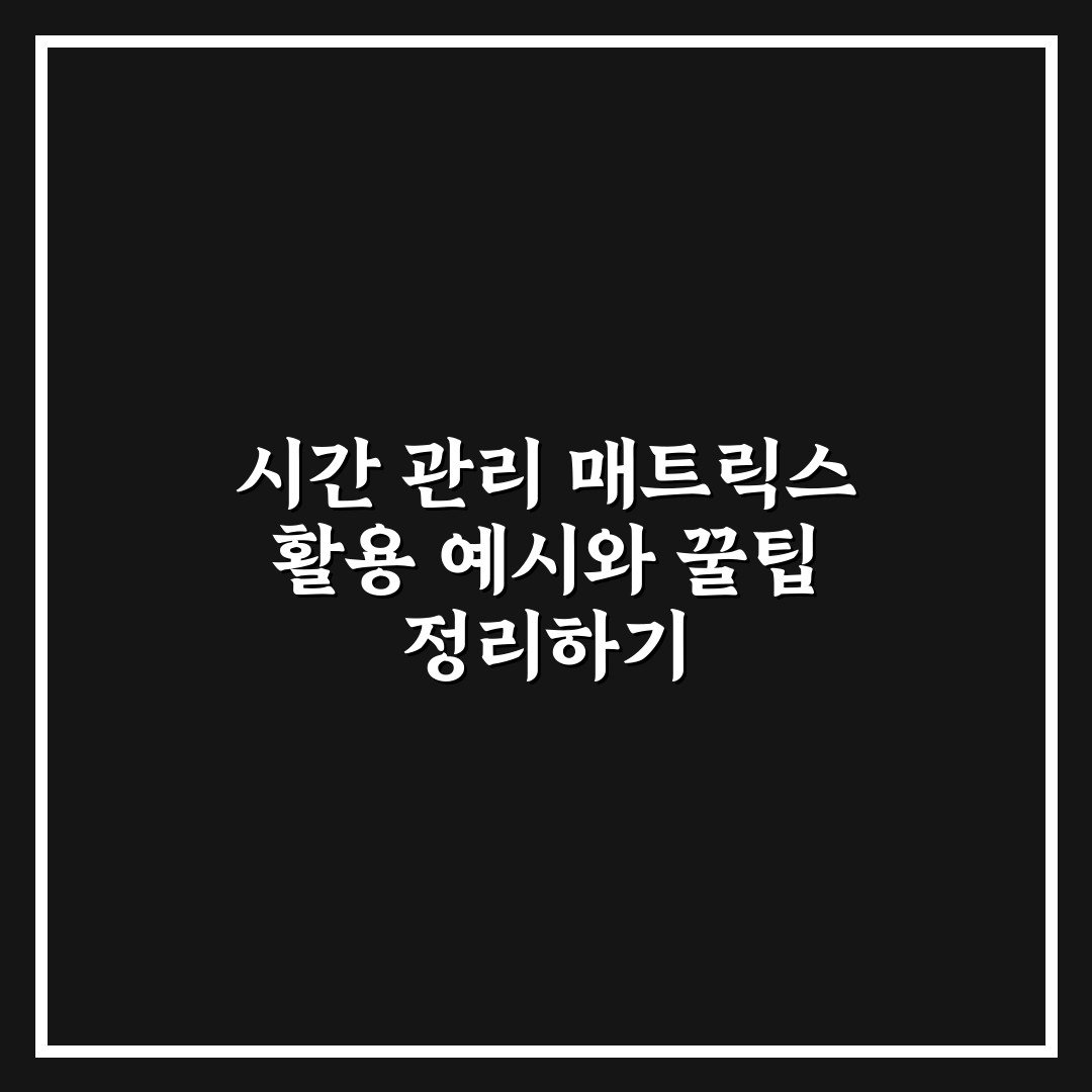 시간 관리 매트릭스 활용 예시와 꿀팁 정리하기 2026년 04월 01일 작성자: 인스 시간 관리 매트릭스 활용 예시와 꿀팁을 통해 효율적인 일정 관리 방법을 배우고 실생활에 적용하는 방법을 소개합니다