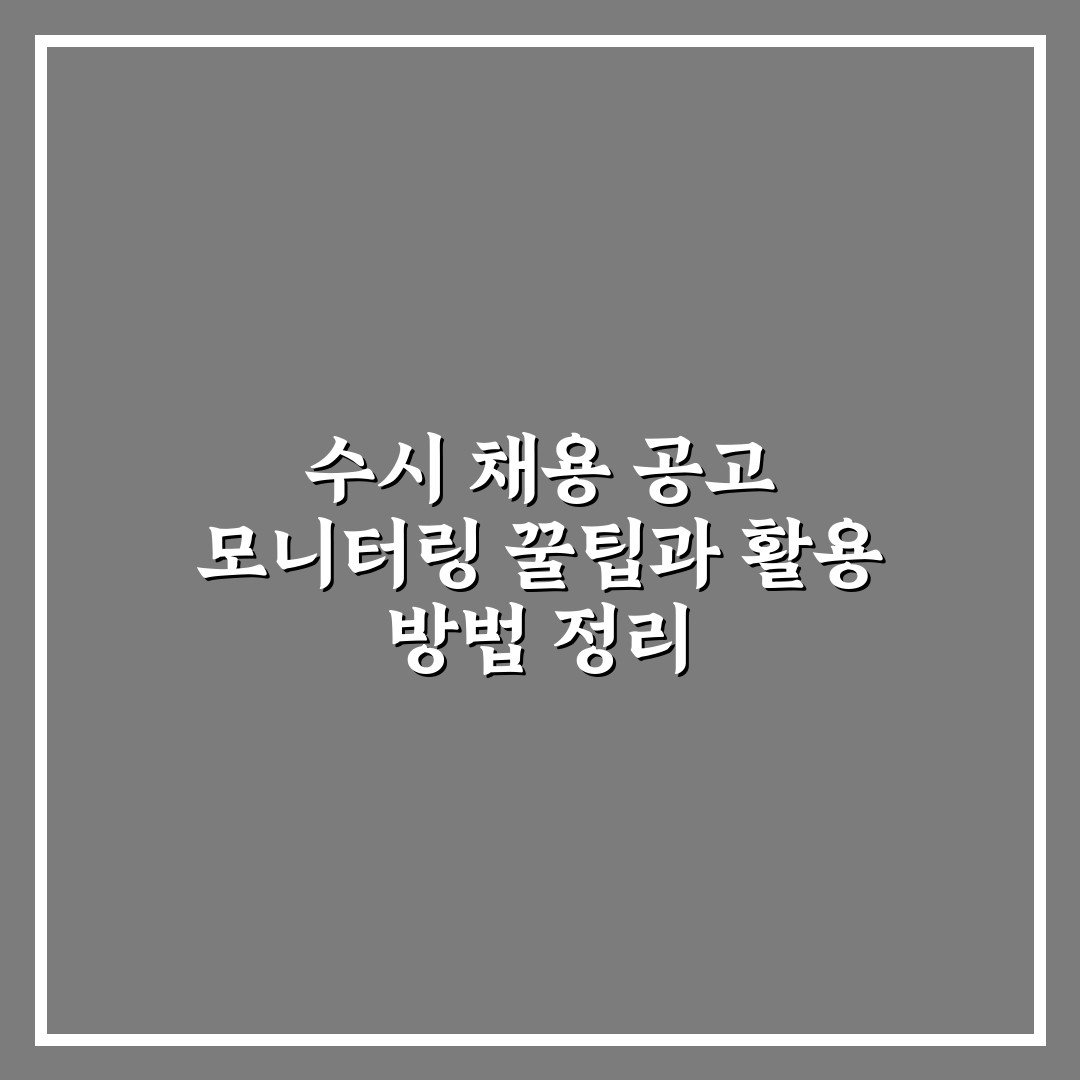 수시 채용 공고 모니터링 꿀팁과 활용 방법 정리 2026년 03월 29일 작성자: 인스 수시 채용 공고 모니터링 방법과 꿀팁을 정리해 취업 준비생들이 효율적으로 정보를 관리하고 활용할 수 있도록 돕습니다