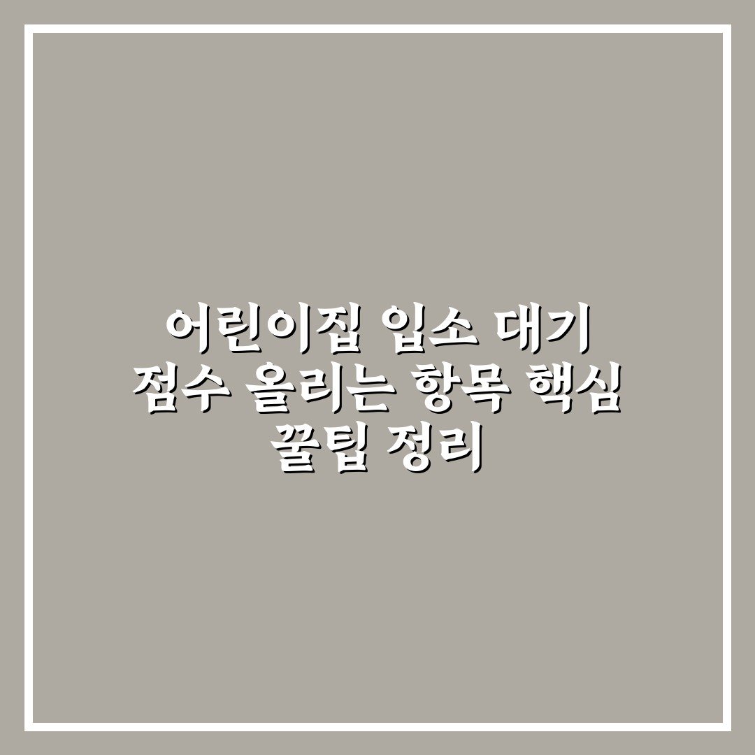 어린이집 입소 대기 점수 올리는 항목 핵심 꿀팁 정리 2026년 03월 23일 작성자: 인스 어린이집 입소 대기 점수 올리는 항목과 핵심 꿀팁을 정리해 부모님이 쉽게 이해하고 활용할 수 있도록 안내합니다
