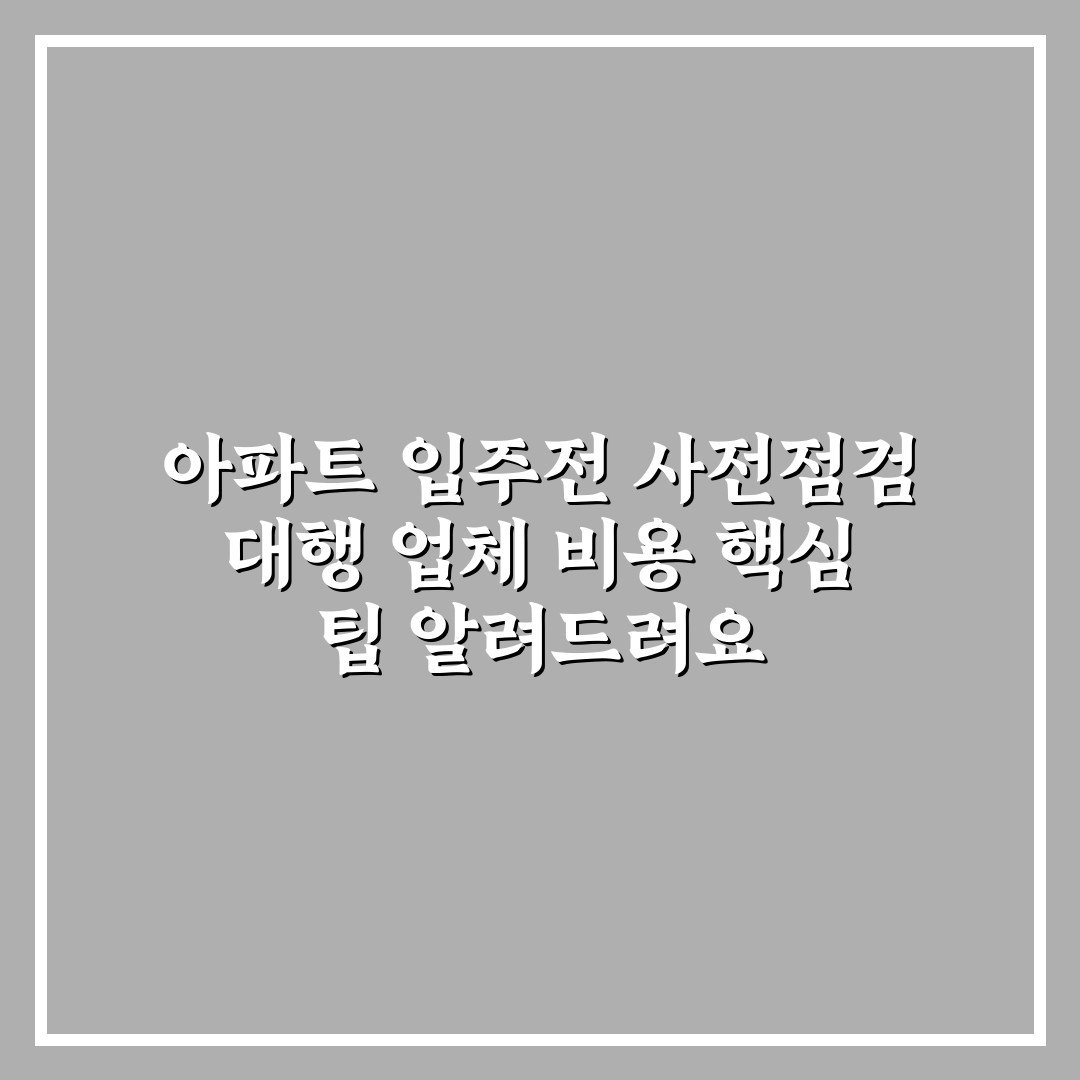 아파트 입주전 사전점검 대행 업체 비용 핵심 팁 알려드려요