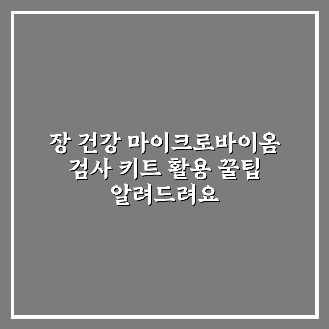 장 건강 마이크로바이옴 검사 키트 활용 꿀팁 알려드려요 2026년 03월 28일 작성자: 인스 장 건강 마이크로바이옴 검사 키트 활용법과 효과적인 사용 팁을 알려드려 장 건강 관리에 관심 있는 분들께 도움을 드립니다